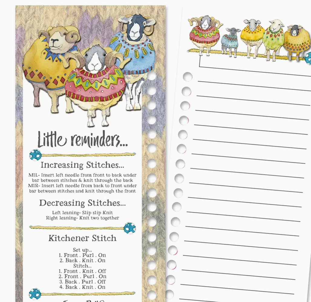 Something every colourwork knitter or crocheter needs- colour cards, measures a handy 99 x 210mm. Sixteen handy punched holes to add your yarn to and write the colour and code for your knitting and crochet charts- really handy when some colours are quite similar! Even better- printed on the reverse with the handy info some of us have to look up everytime!