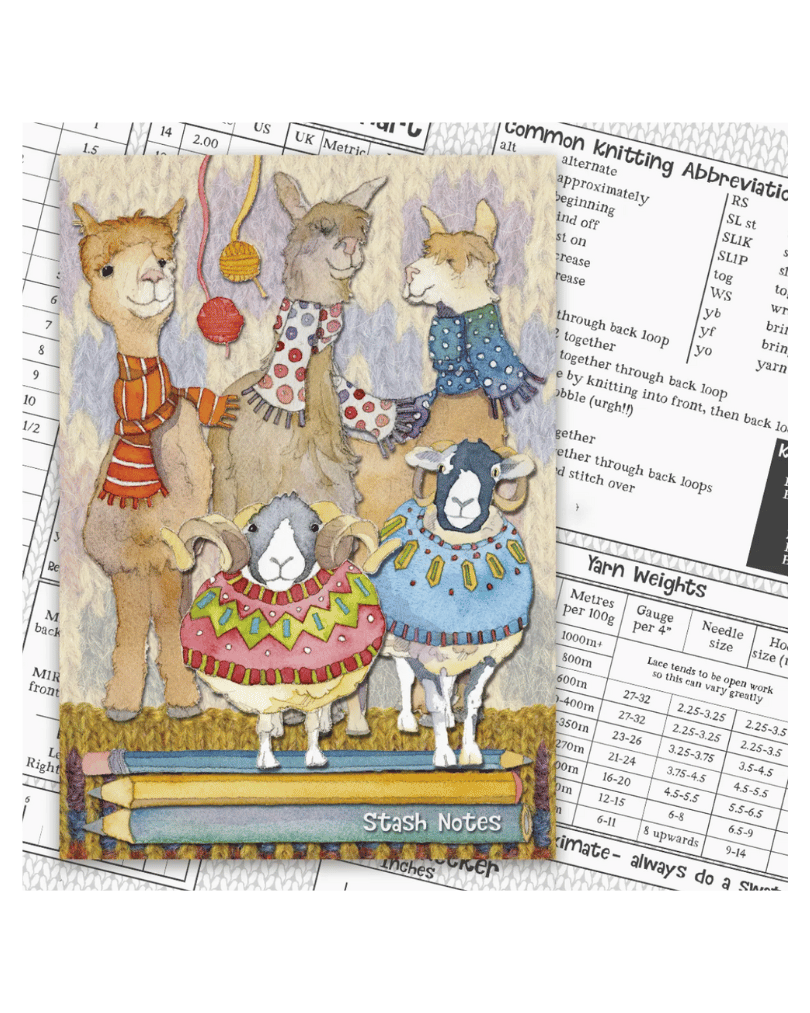 Even handier- is the inside cover has those handy yarn and needle conversions, M1R- M1L and kitchener stitch etc- and room to colour in the back page if you fancy it!!