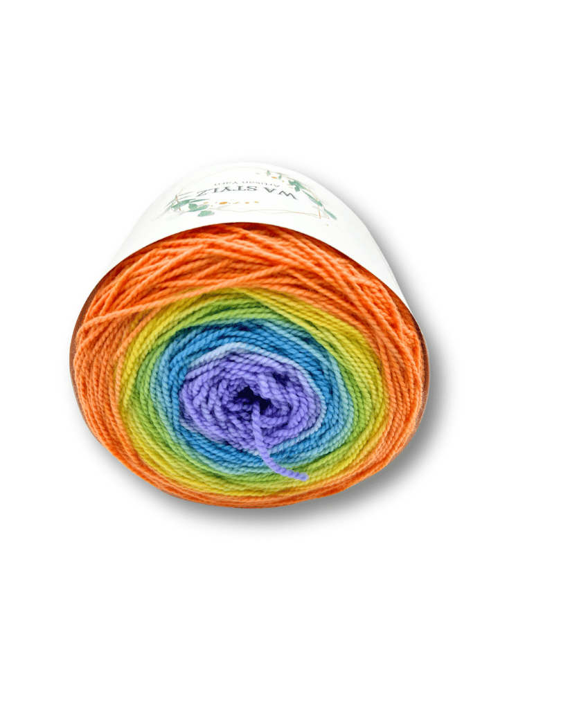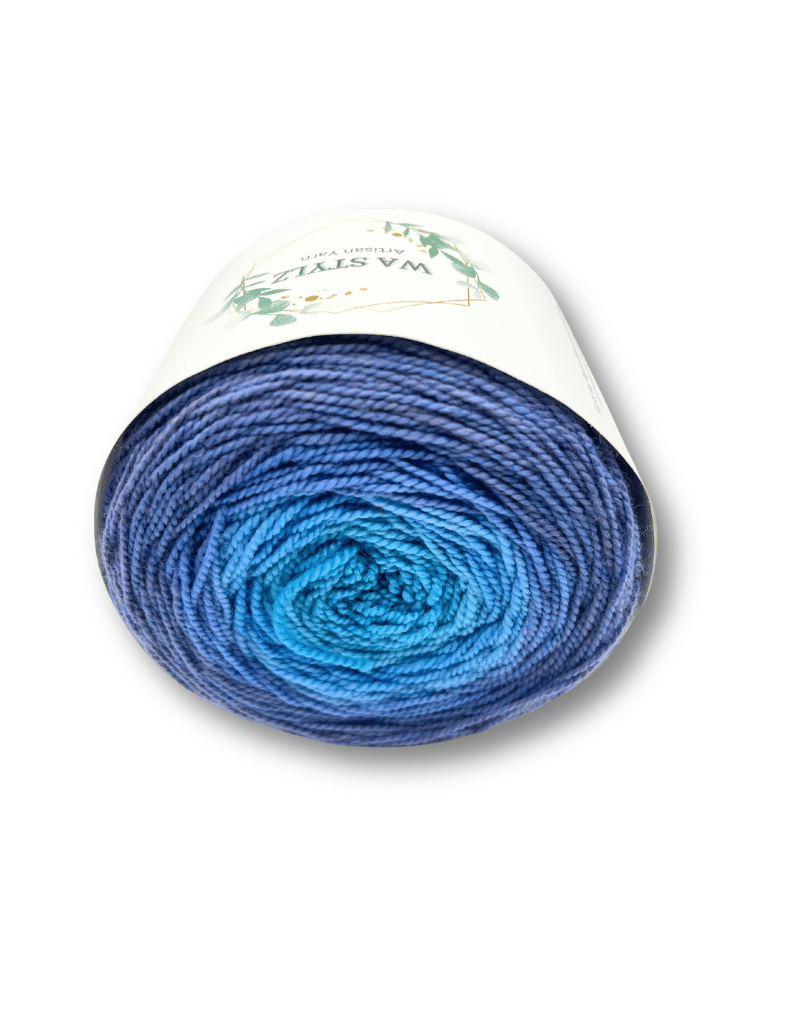 Experience the smooth colour transitions and vibrant artistry of WAStylz Gradient Sock, a 150g high-twist 4ply yarn perfect for eye-catching shawls, socks, and garments.