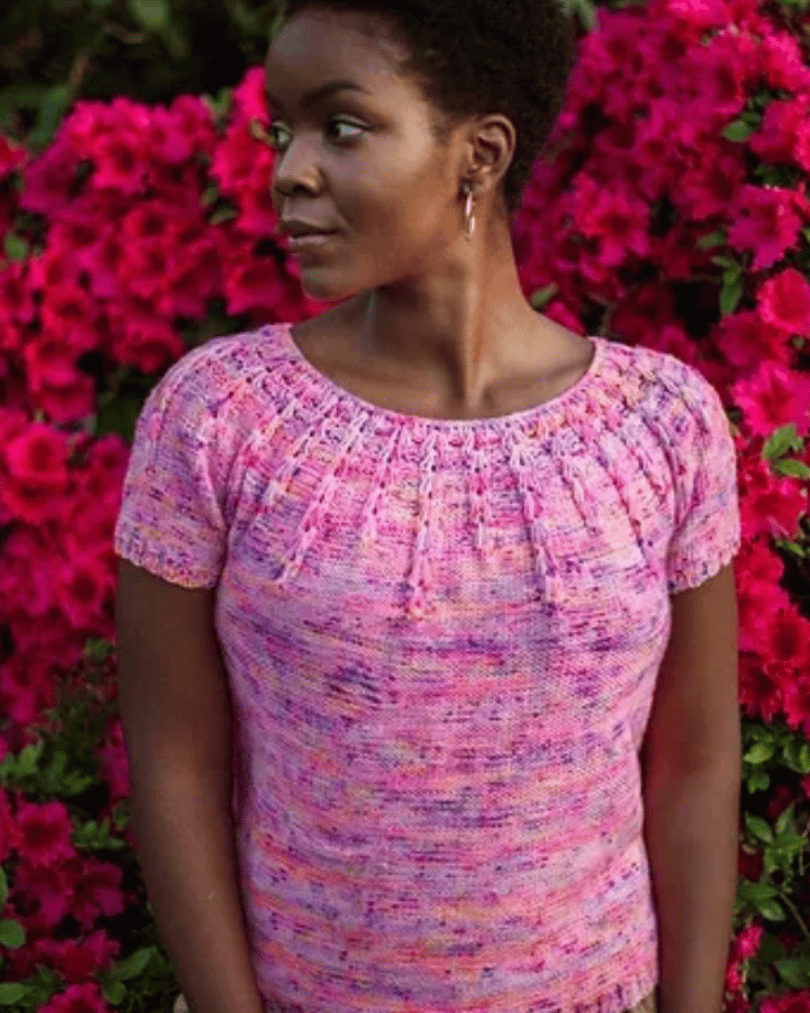 Summer Sorrel is knit seamlessly top-down in the round, with the body worked inside out for ease of working in knitted stockinette stitch rather than purling. And with the pattern including both written and charted instructions, as well as video tutorials and written explanations for special stitches, you’ll be able to tackle this project with confidence.